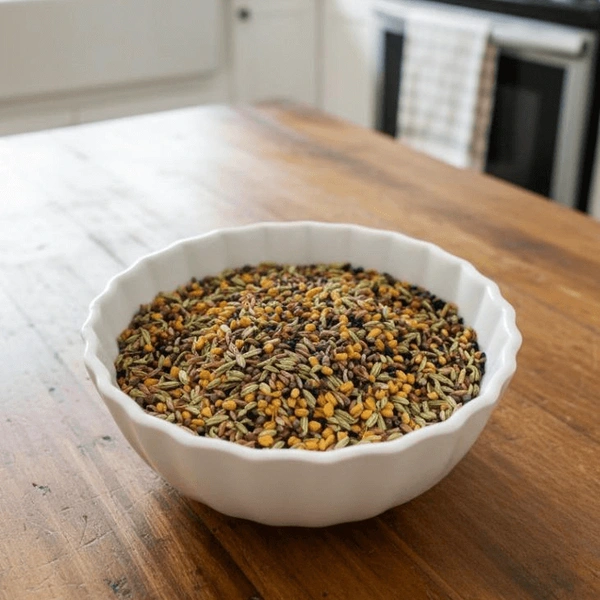 Panch Phoron is a popular Eastern Indian spice blend made from five whole seeds: fenugreek, cumin, mustard, fennel, and nigella seeds.