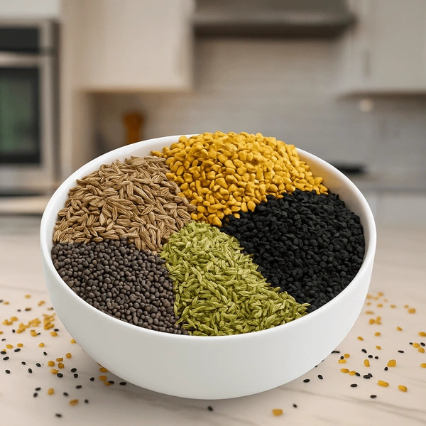 Panch Phoron is a popular Eastern Indian spice blend made from five whole seeds: fenugreek, cumin, mustard, fennel, and nigella seeds.